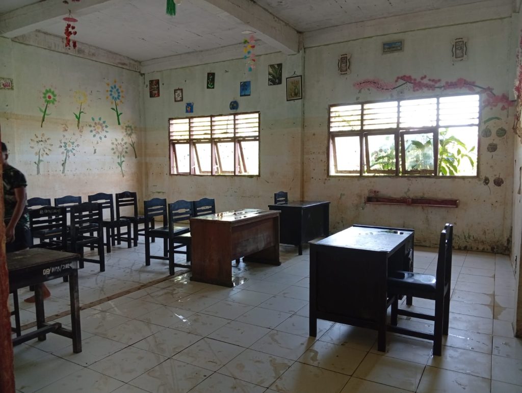 Personel Satgas Gulbencal Kodam I/BB yang terdiri dari personel Kodim 0211/TT melalui Koramil 03/Pandan dan Yon TP 905/TS bekerja bersama para guru bahu membahu melakukan pencangkulan dan pengangkutan material tanah di area dalam maupun luar sekolah, serta memindahkan peralatan sekolah yang terdampak banjir dengan menggunakan peralatan sederhana seperti sekop, cangkul, angkong, dan pompa air.