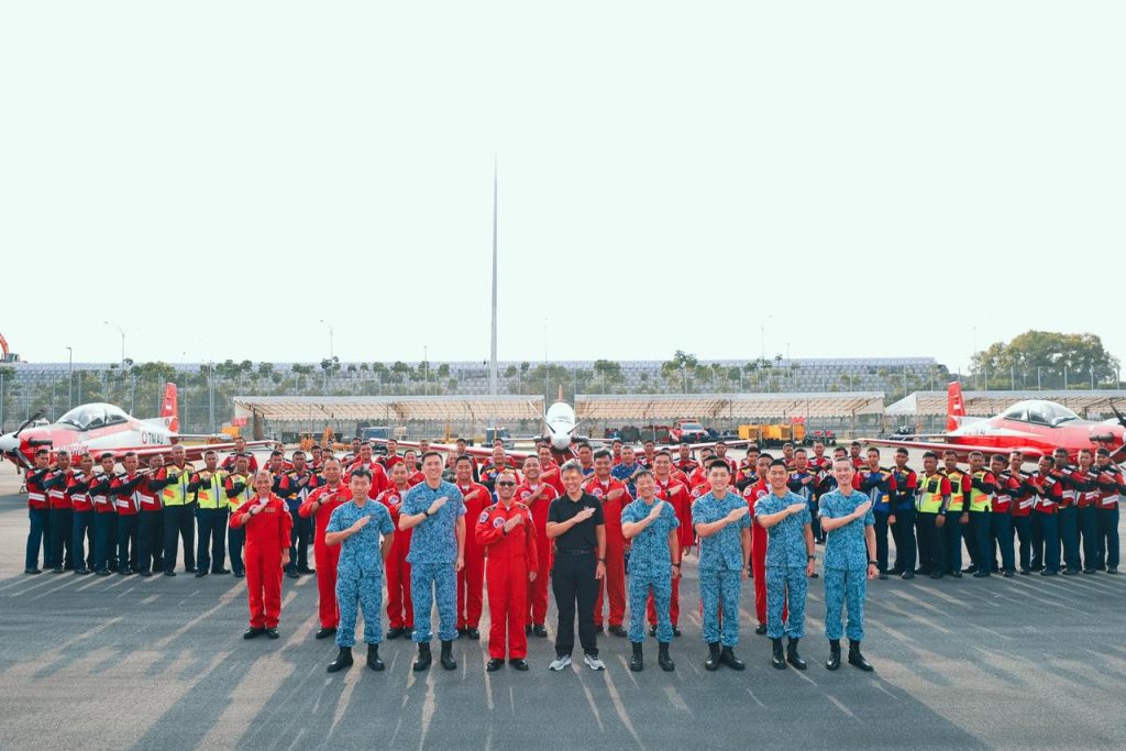 Singapura, Nusantara Bicara — Jupiter Aerobatic Team (JAT) menerima kunjungan Menteri Pertahanan Singapura, Chan Chun Sing, bersama Kepala Staf Republic of Singapore Air Force (RSAF) Mayor Jenderal Kelvin Fan di Changi Air Base (East), Singapura, Jumat (6/2/2026).