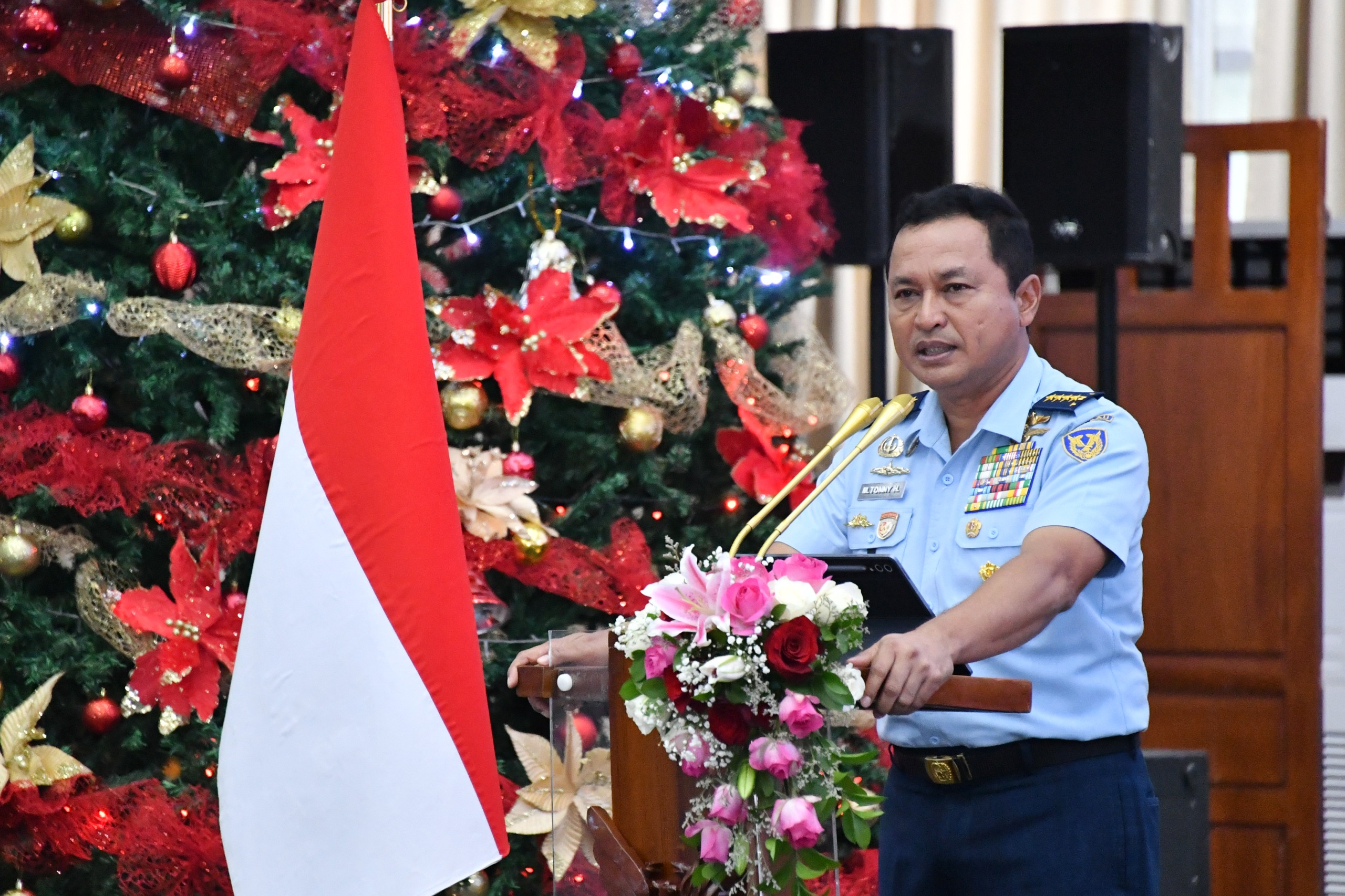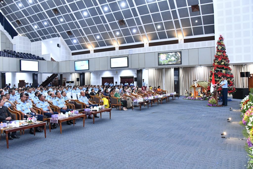 Dalam sambutannya, Kasau menyampaikan perayaan Natal menjadi momen untuk mempererat kebersamaan sekaligus memperbarui semangat pengabdian seluruh personel TNI AU.
