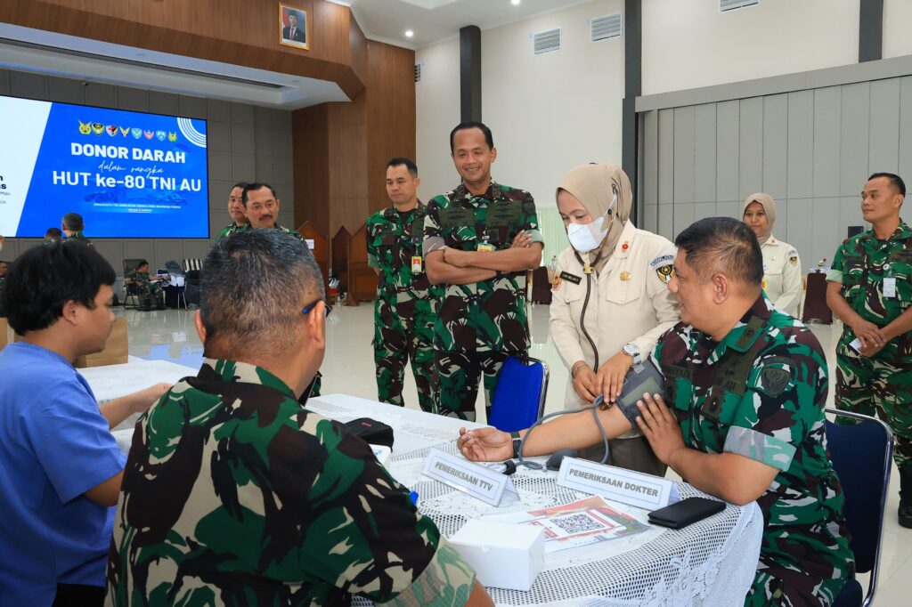 Nusantara Bicara, Jakarta — Komando Pembinaan Doktrin, Pendidikan, dan Latihan TNI Angkatan Udara (Kodiklatau) menggelar aksi donor darah di GOR Ganeca Makodiklatau, Jakarta, Senin (6/4/2026). Agenda tersebut bagian dari peringatan ke-80 Hari TNI AU sekaligus wujud kepedulian sosial kepada masyarakat.