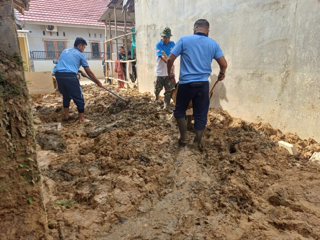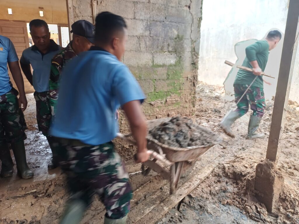 Sejumlah personel Lanud diterjunkan ke lokasi terdampak untuk membantu membersihkan rumah-rumah warga, jalan umum, serta berbagai fasilitas publik yang terdampak banjir.