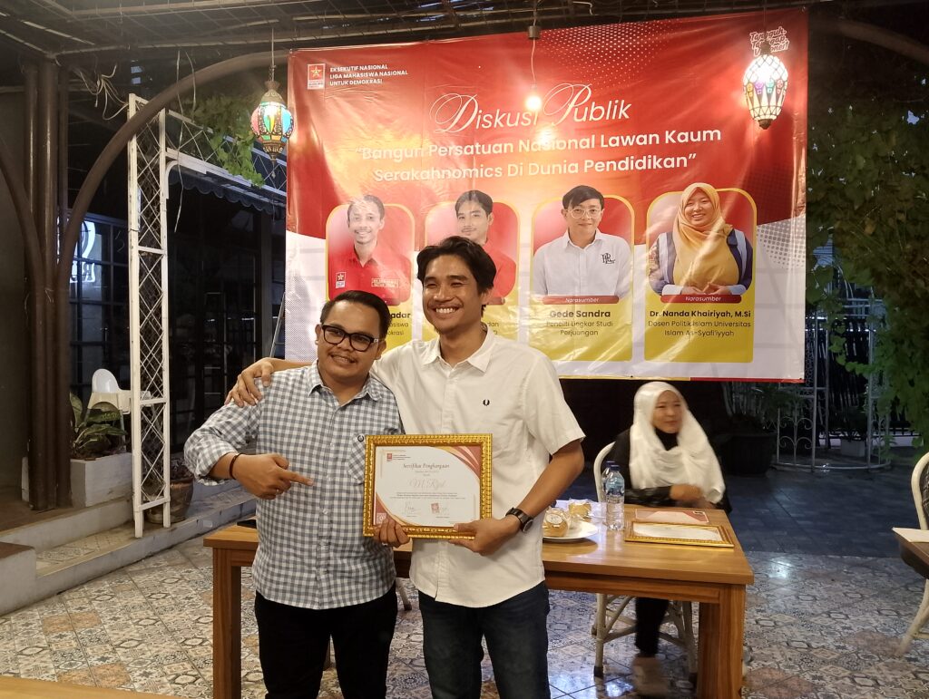 Nusantara Bicara, Jakarta — Sejumlah aktivis mahasiswa dan akademisi menggelar diskusi publik bertajuk “Bangun Persatuan Nasional Lawan Kaum Serakahnomics di Dunia Pendidikan” pada Senin, 27 April 2026, di Jakarta. Kegiatan ini menyoroti persoalan komersialisasi pendidikan yang dinilai semakin menguat dan berdampak pada ketimpangan akses bagi masyarakat.