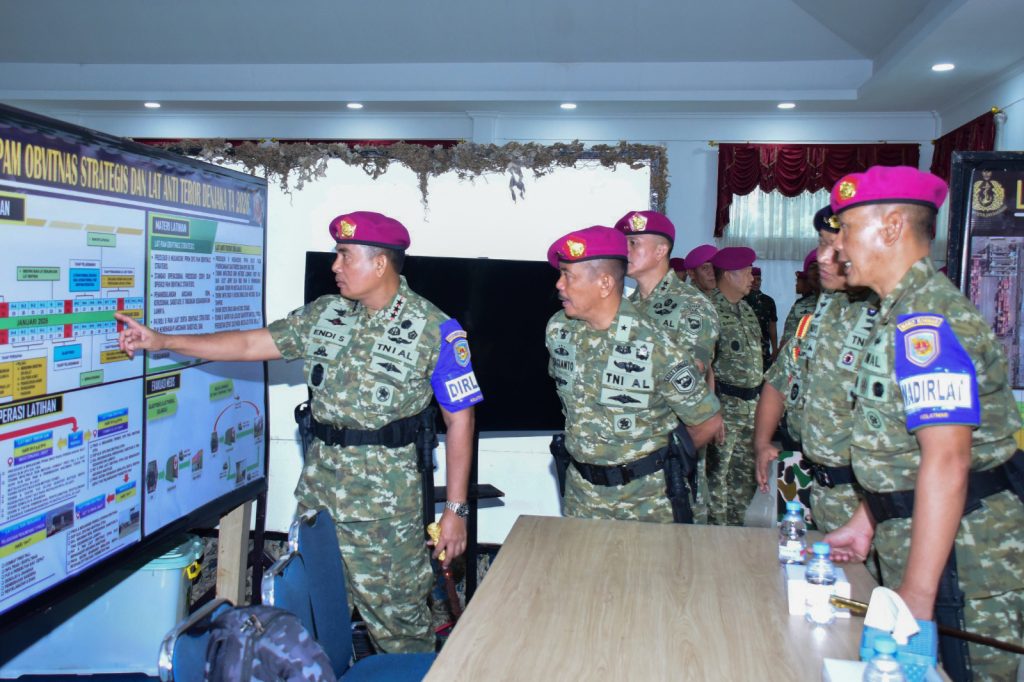 Jakarta, Nusantarabicara — Panglima Korps Marinir (Pangkormar) Letnan Jenderal TNI (Mar) Dr. Endi Supardi, S.E., M.M., M.Tr.Opsla., CHRMP., CRMP., memimpin briefing pembukaan Latihan Operasi Pengamanan Objek Vital Nasional (Obvitnas) Strategis dan Latihan Anti Teror Denjaka Tahun 2026 di Gedung Bapra Denjaka, Kesatrian Arthur Solangs, Cilandak, Jakarta Selatan, Jumat (23/01/2026).