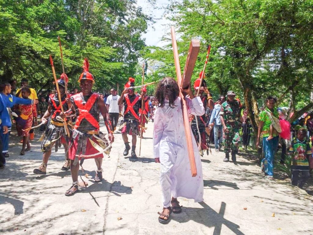 Selama kegiatan berlangsung, situasi terpantau aman dan tertib. Masyarakat mengikuti seluruh rangkaian prosesi jalan salib dengan penuh khidmat hingga kegiatan selesai. (Pendim 1710/Mimika)