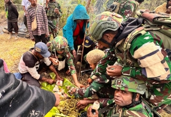 Nusantara Bicara, Oksop, Pegunungan Bintang — Pos Oksop Yonif 751/ Vira Jaya Sakti (VJS) Satgas Swasembada melaksanakan bakar batu bersama masyarakat Kampung
