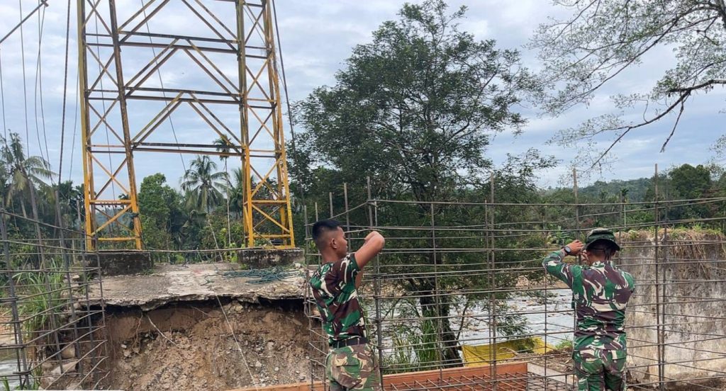 SUMBAR, Nusantara Bicara – Pascabencana alam yang melanda wilayah Sumatera Barat, TNI Angkatan Darat melalui Kodam XX/Tuanku Imam Bonjol (TIB) bergerak cepat membangun jembatan gantung di Jorong Kampung Alai, Nagari Ganggo Mudik, Kecamatan Bonjol, Kabupaten Pasaman, Sabtu (21/2/2026). Pembangunan ini dilakukan untuk memulihkan akses utama masyarakat yang sebelumnya terputus akibat bencana.