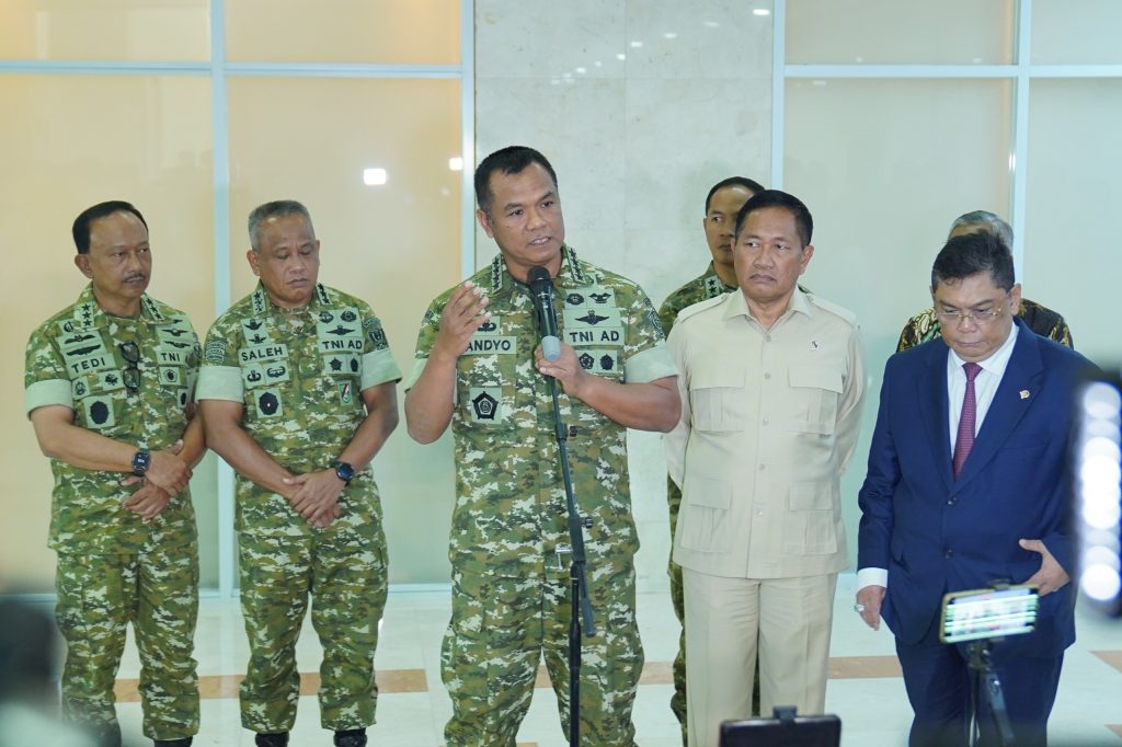 Jakarta, Nusantara Bicara — Wakil Panglima TNI Jenderal TNI Tandyo Budi R bersama Wakil Menteri Pertahanan RI Donny Ermawan didampingi Wakil Kepala Staf TNI Angkatan Darat Letjen TNI Muhammad Saleh Mustafa, Wakil Kepala Staf TNI Angkatan Laut Laksdya TNI Erwin S. Aldedharma dan Wakil Kepala Staf TNI Angkatan Udara Marsdya TNI Tedi Rizalihadi melaksanakan Rapat Kerja yang dilaksanakan secara tertutup bersama Komisi I DPR RI, bertempat di Ruang Rapat Komisi I DPR RI Gedung Nusantara II, Gedung MPR/DPR RI, Jakarta Pusat, Selasa (10/2/2026).